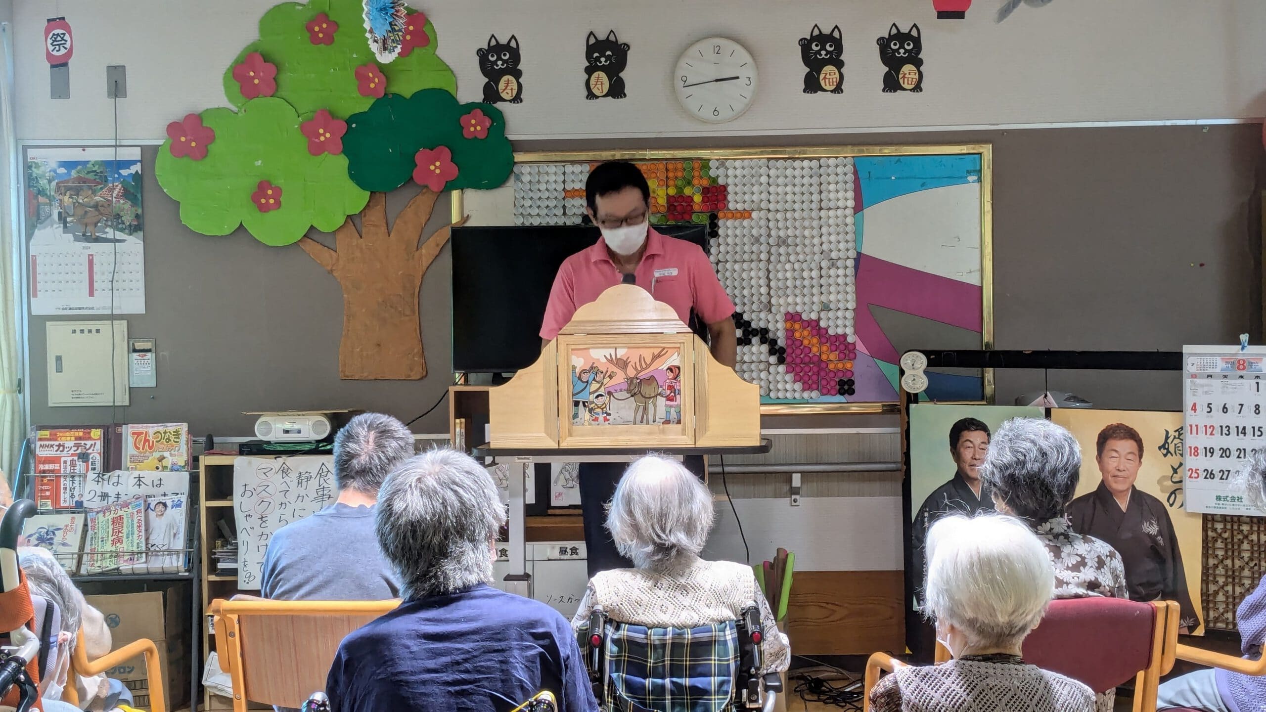 ★ショートステイ★エンターテイナー★ 2024年08月05日 01:45PM ★今日のショートステイの余暇活動★ 今日のショートステイの余暇活動は紙芝居職人による紙芝居語りでした! 低くてやわらかい声で語られると、お話の中に吸い込まれてしまいますね🌸 とても心地のよい時間になりました ( ^^)★